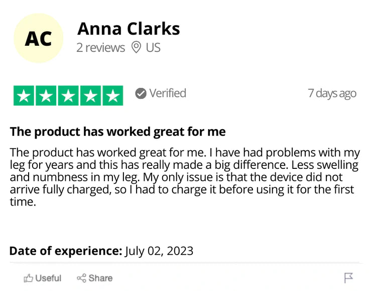 I've tried everything – physio, medicines, food supplements… Nothing has ever really worked. But this Footustoday massager is an exception and works incredibly well. It quickly relieved my foot pain and made my varicose veins disappear. It also relieved my cramps effectively. The device is easy to use; it charges by cable and adapts to any foot size.